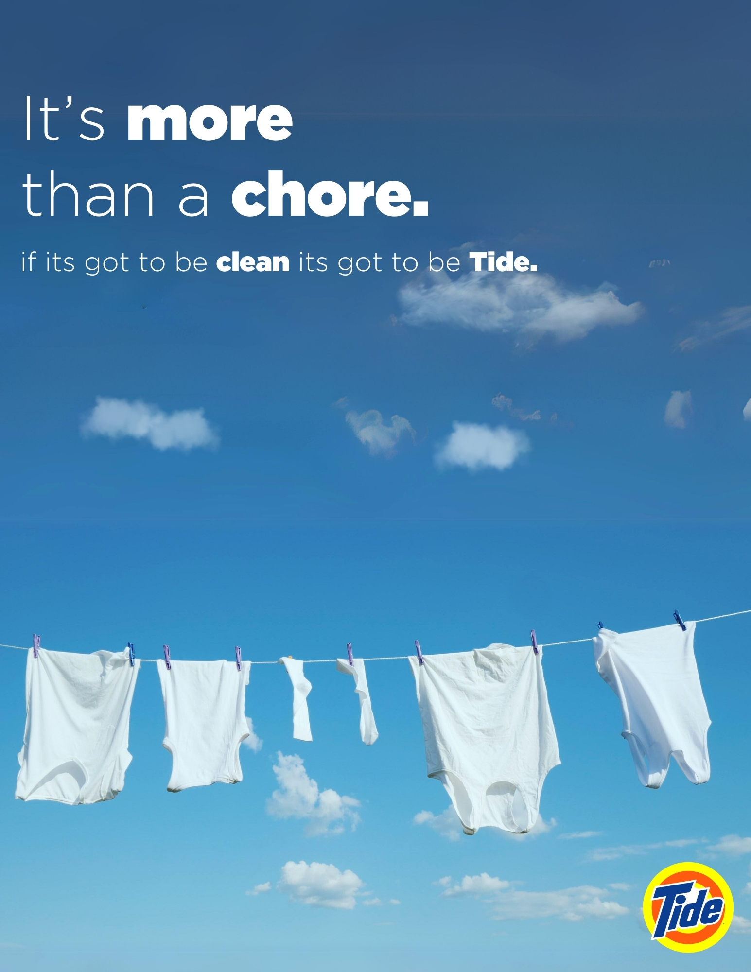 Color sorting got you down? Are shrinking clothes a regular occurrence? Do you find yourself turning your whites into pinks? Worry no more, with Tide, experience a worry-free laundry routine. Symptoms may include feeling good, saving money, and helping the environment.